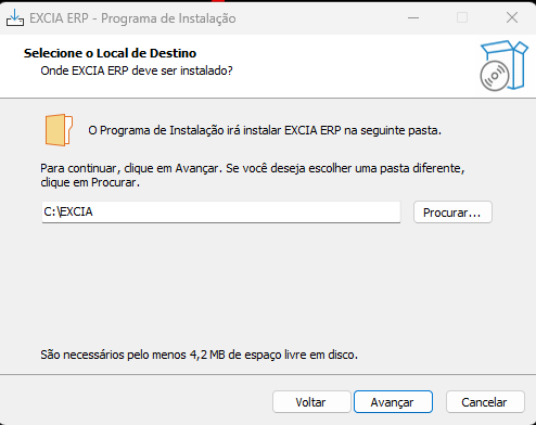 1.4 – Depois, será solicitado o caminho de instalação para a criação da pasta raiz do Excia ERP.