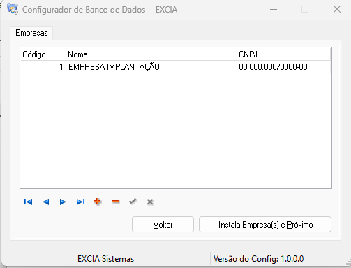 2.2 – Após definir as informações da base, é necessário configurar os dados da(s) empresa(s), informando o nome e o CNPJ de cada uma.