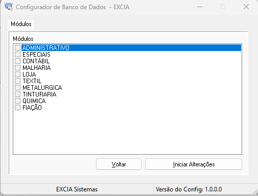 2.3 – Em seguida, devem ser definidos os módulos que a empresa utilizará, sendo necessário selecionar cada módulo correspondente.