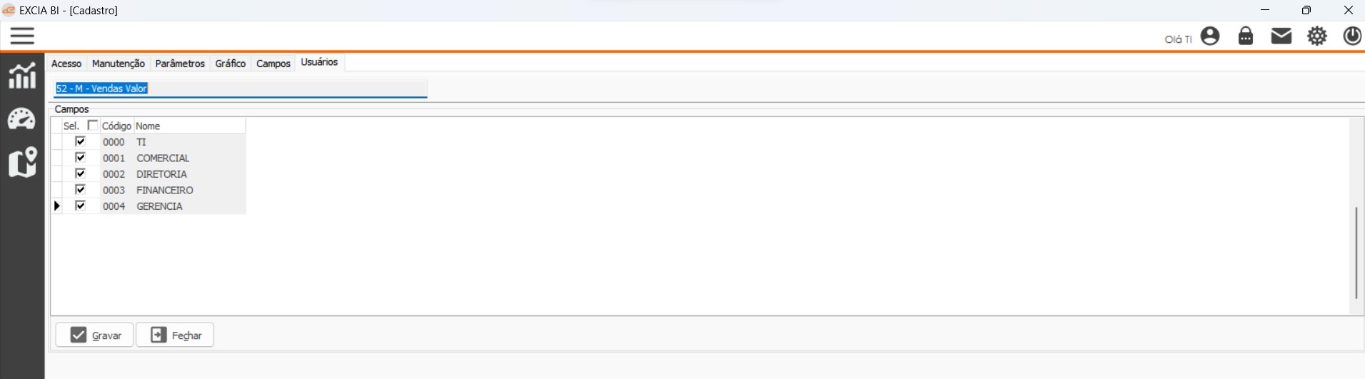 Aba de acesso aos indicadores criados, aqui lista os usuários que tem acesso a visualizar o indicador.