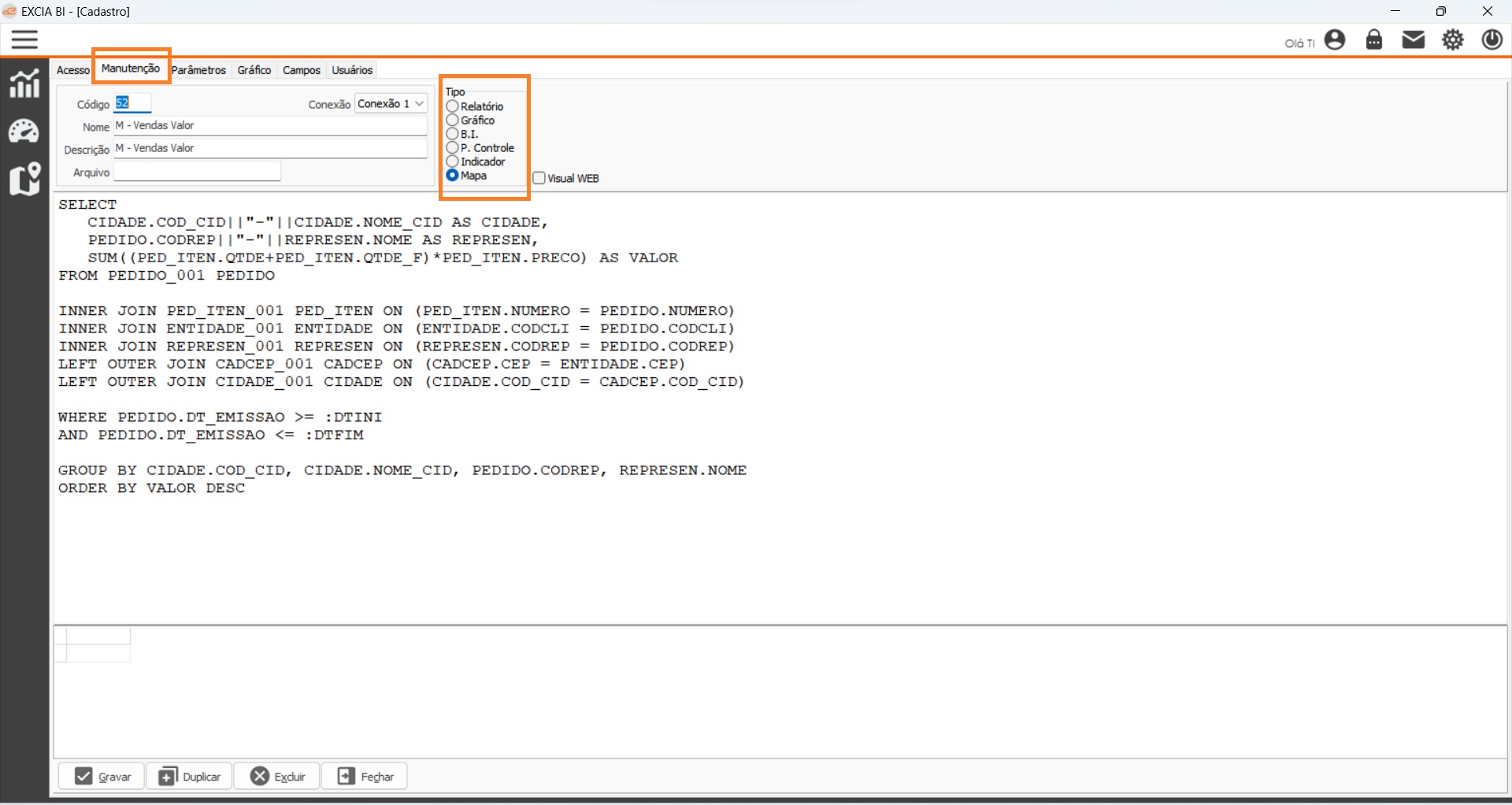 Na aba de acesso é possível listar todos indicadores criados, através do duplo clique abre a aba de manutenção.