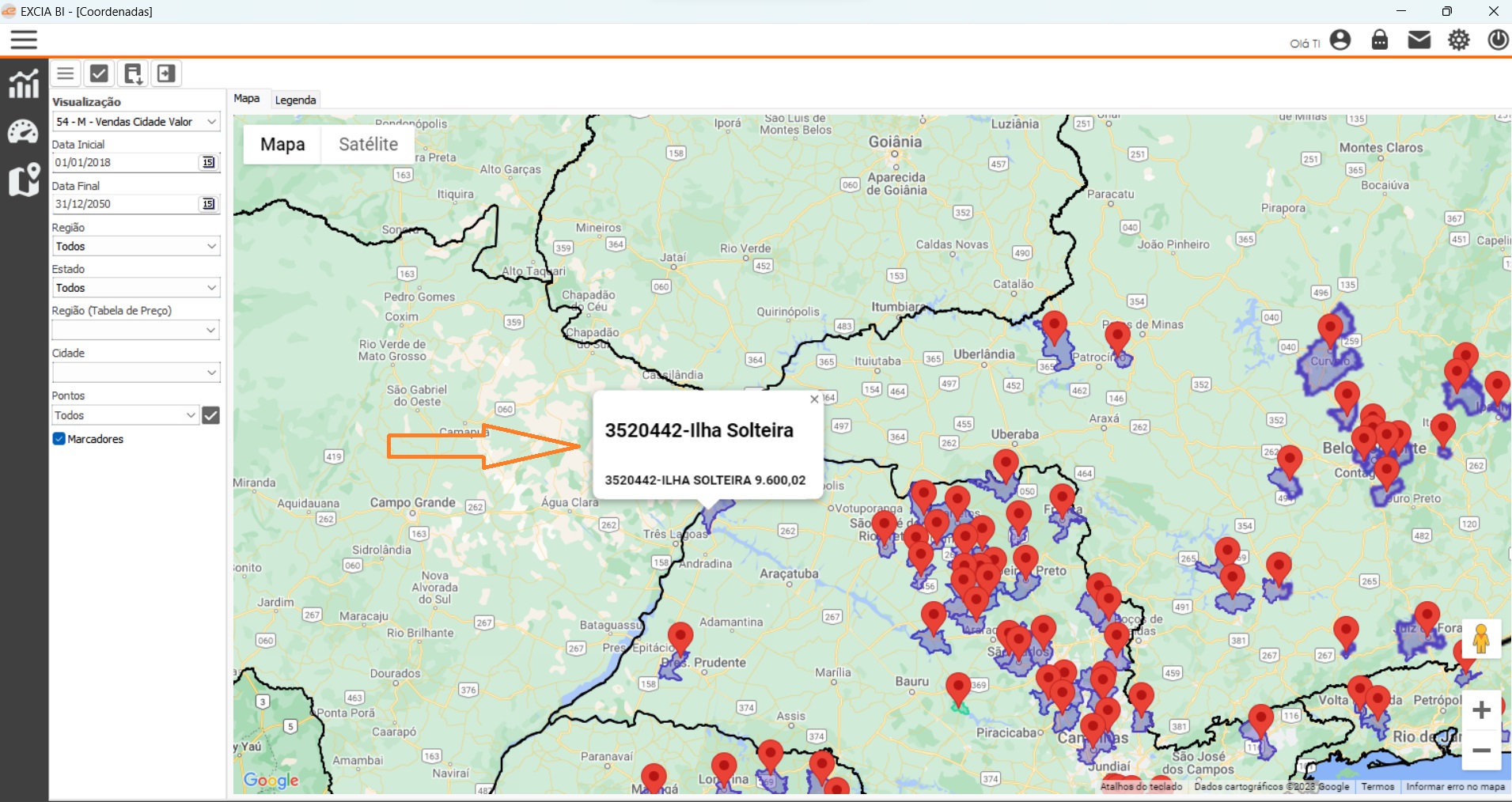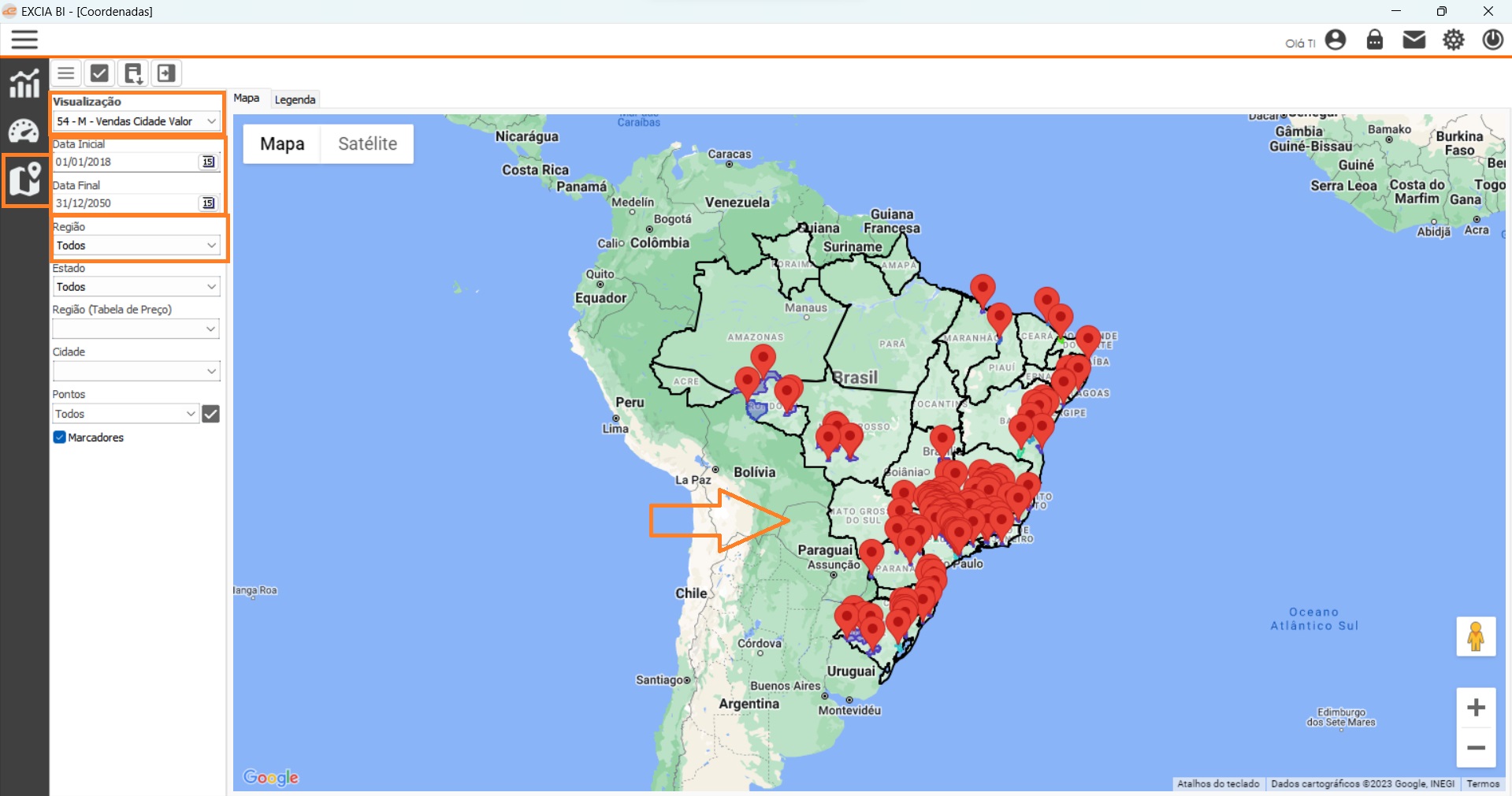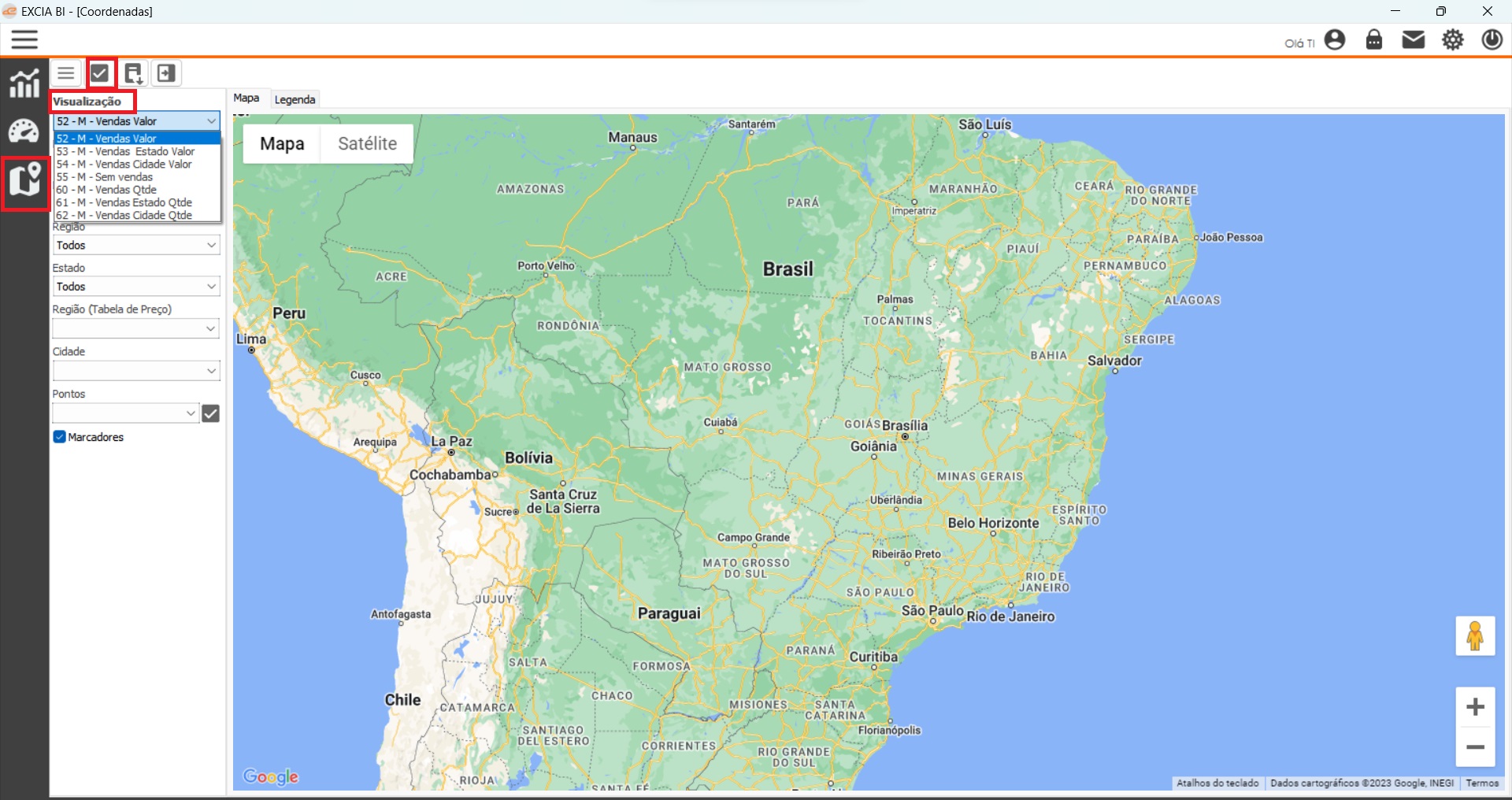 O tipo de mapas no BI é para gerar indicadores em mapas, por região cidade, estado, destinado a área comercial: