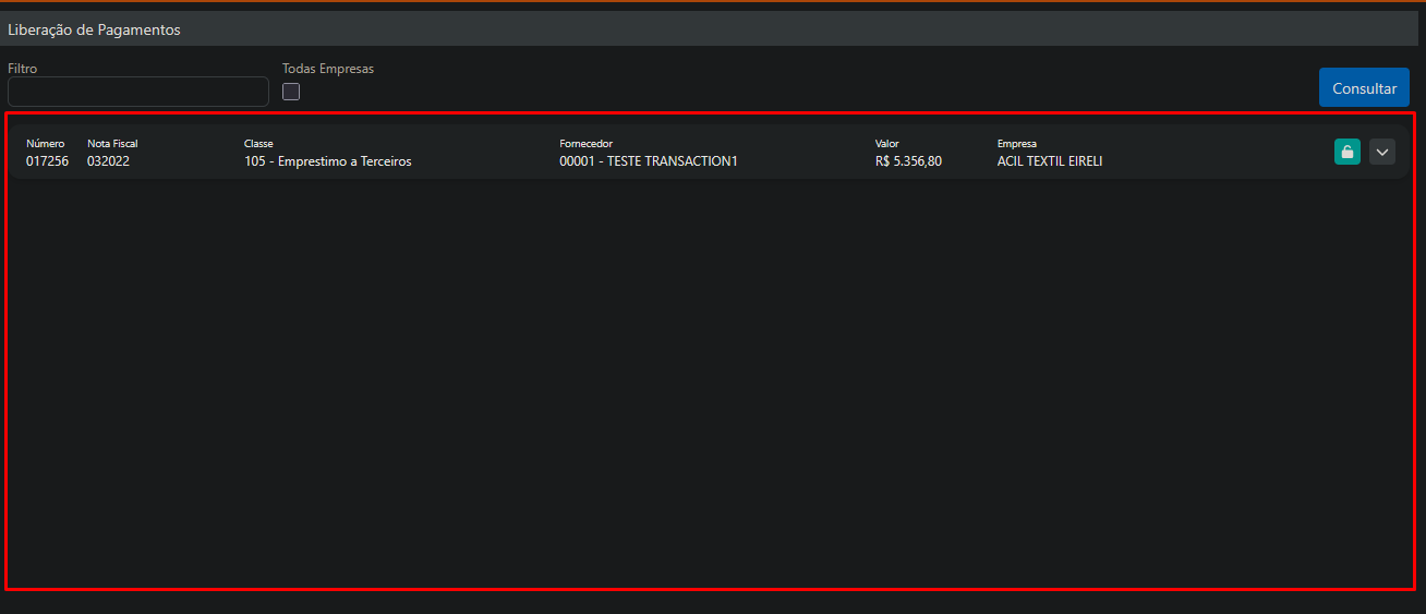 Liberar: Altera o status do título de bloqueado para liberado, permitindo a continuidade do processo de pagamento.