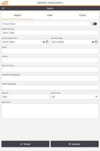 • Observação: Permite informar observações do pedido.