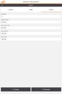 Aba para validação dos valores e quantidades do Pedido, com os respectivos campos: