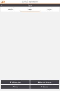 • Ler Cód. de Barras: Abre a câmera do dispositivo para que seja lido o código de barras do item para ser incluído no Pedido.