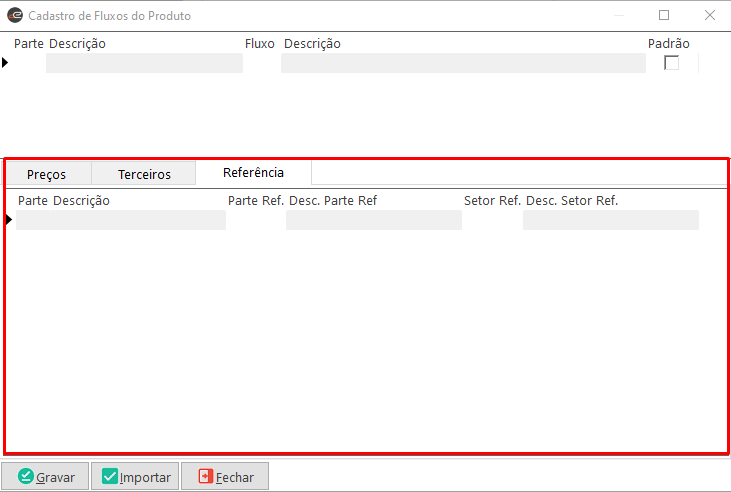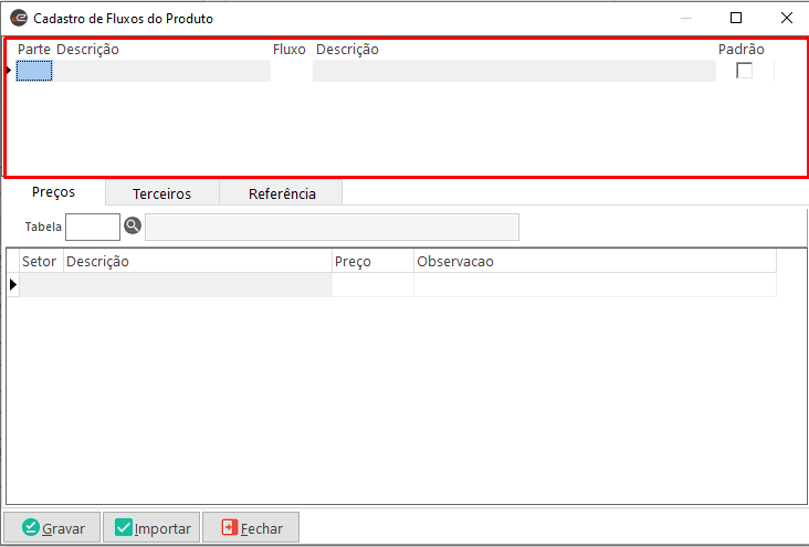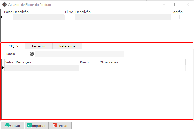 - Importar: com essa opção, pode importar os Fluxos de outro Produto, além do Preços, Terceiros e Referências.