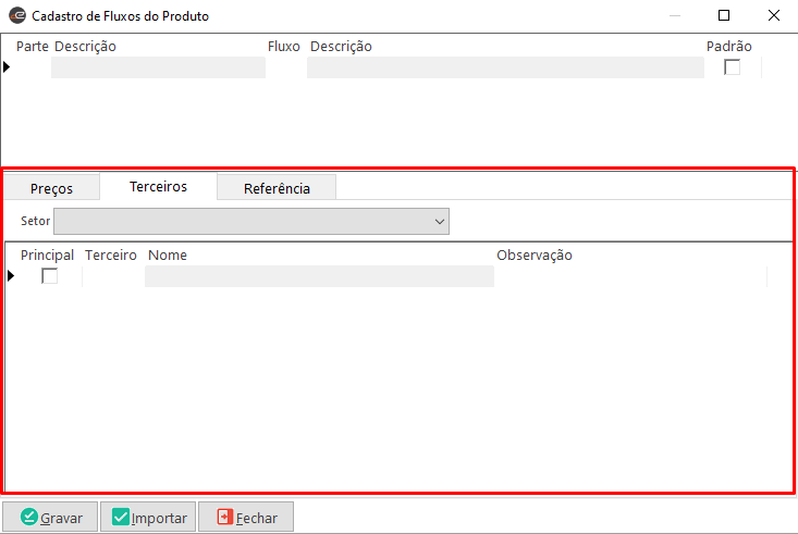 - Setor: Fluxo que deseja enviar ao Terceiro.