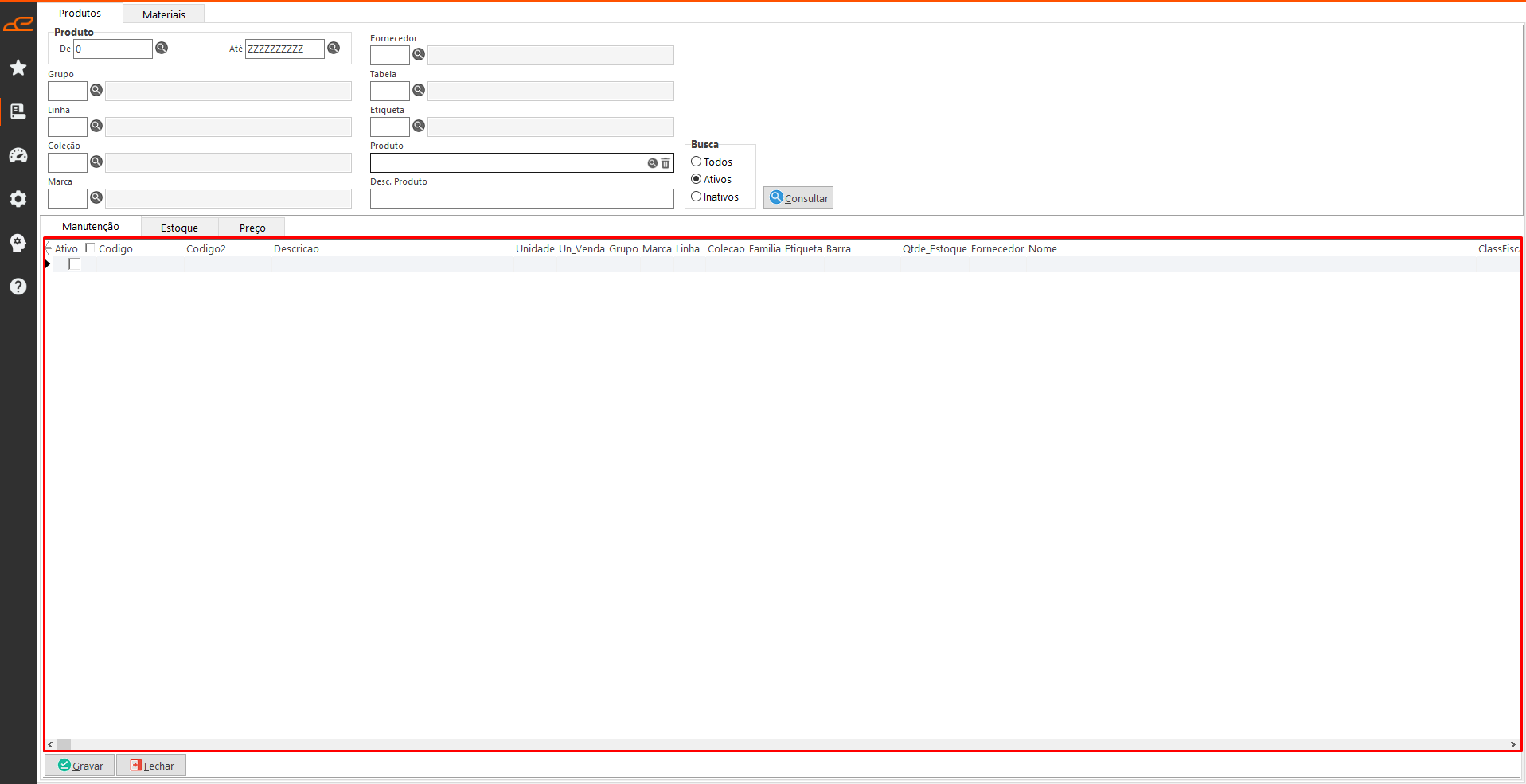 - Manutenção: Esta tabela permite fazer alterações no cadastro do produto.