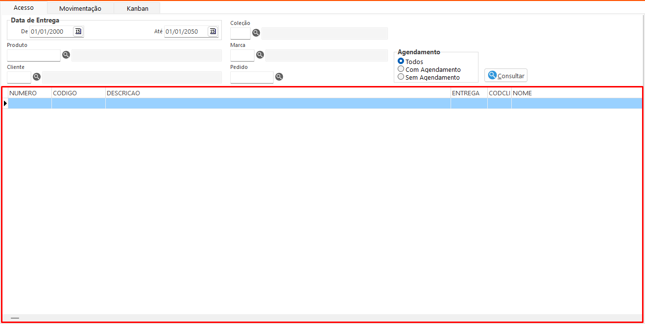 - Data de Entrega: Exibe, na consulta, os pedidos conforme a data de entrega informada.