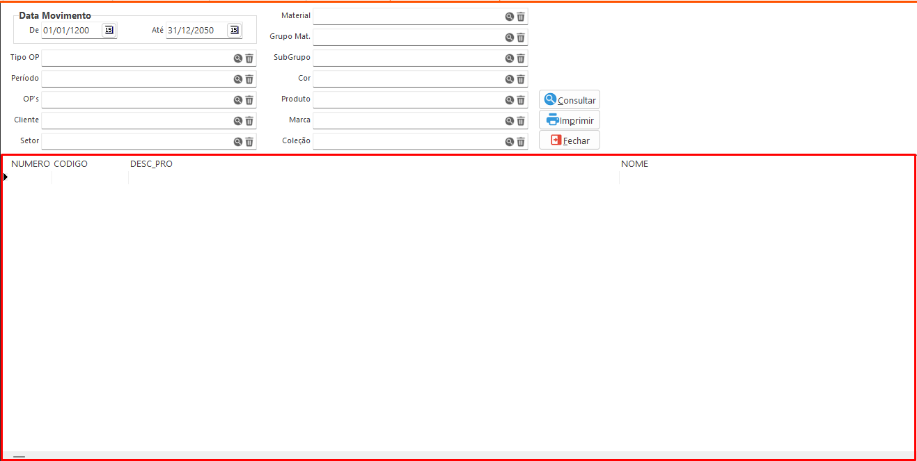 - OPs: Informa os números das ordens de produção utilizadas como filtro.