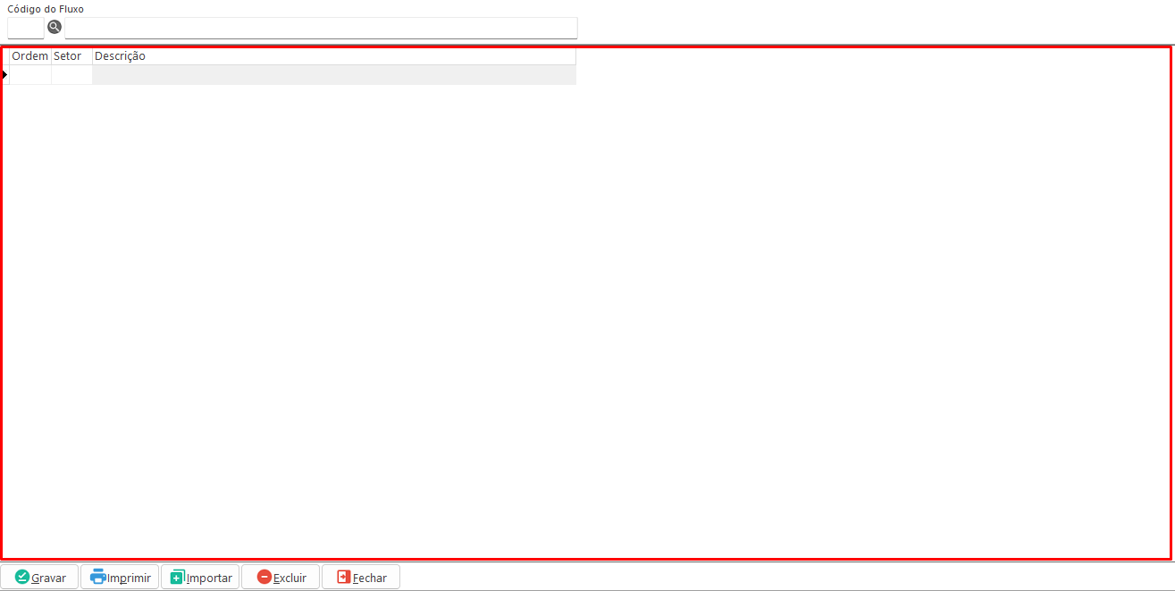 - Código do Fluxo: Permite consultar o número do fluxo. Se o fluxo não estiver cadastrado, será solicitado ao usuário se deseja incluir um novo fluxo.