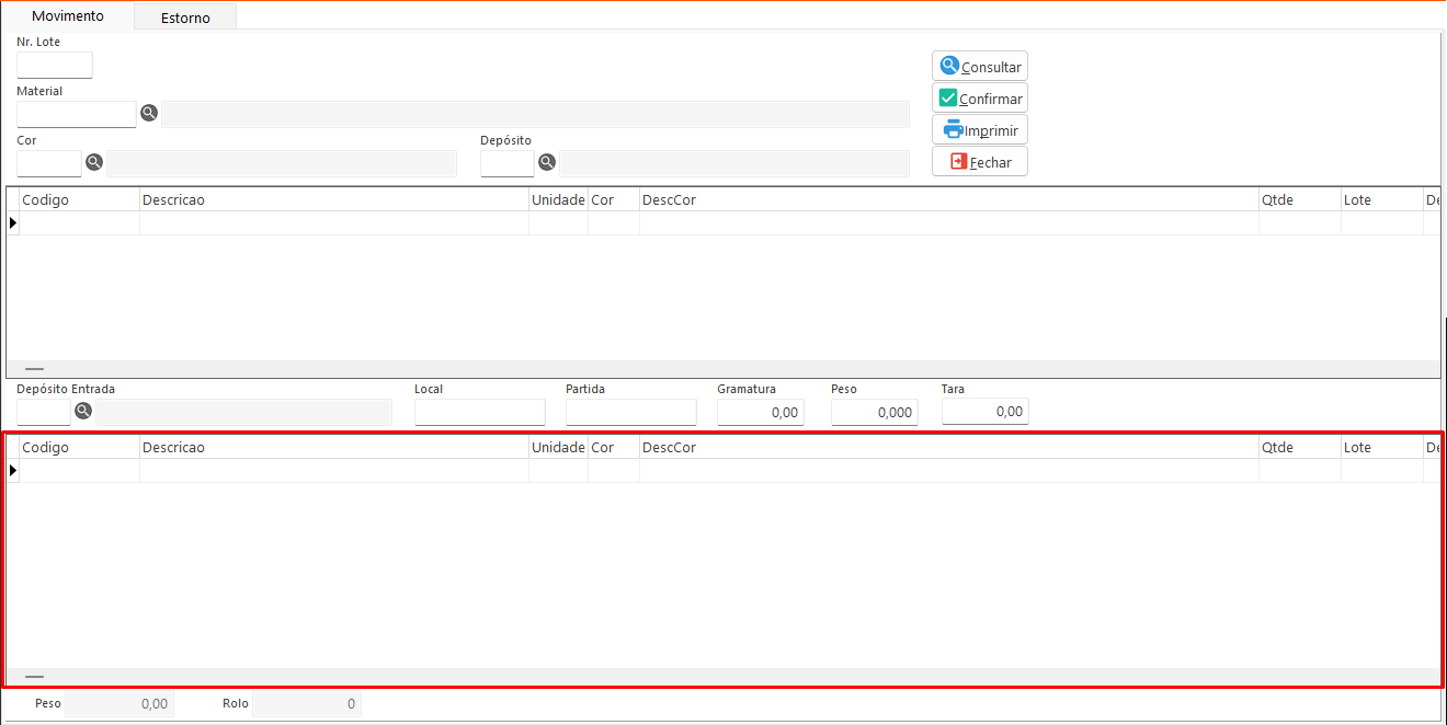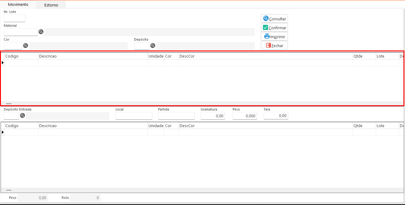 - Nr. Rolo: Informa o número do rolo referente ao lote.