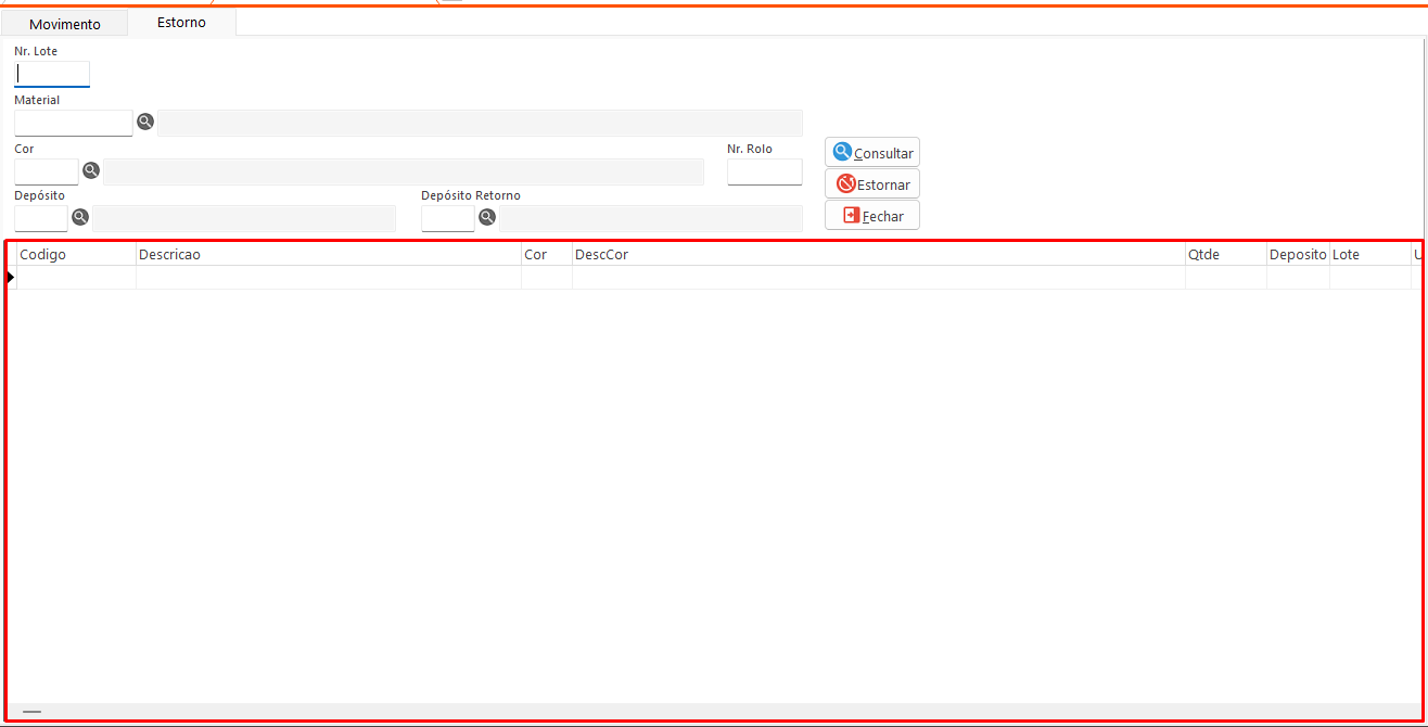 - Estornar: Realiza o estorno de estoque para todos os itens listados na consulta.