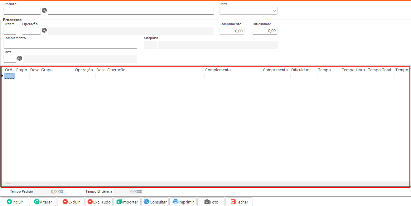 - Parte: Indica a parte do produto na qual o processo será realizado.