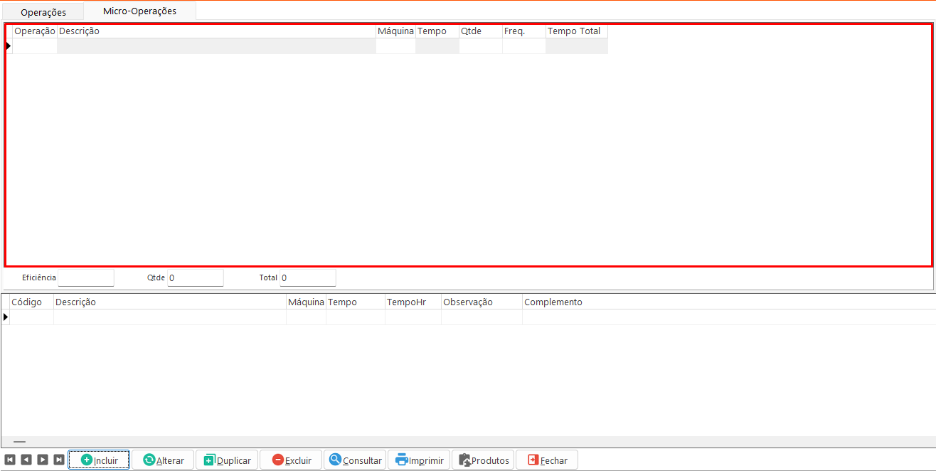 • Micro-Operações: Informa as micro-operações vinculadas à operação, permitindo registrar o tempo e a quantidade de cada uma.