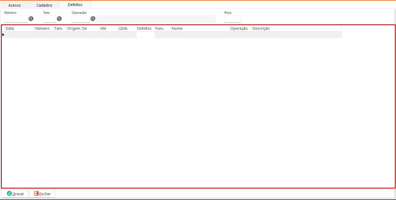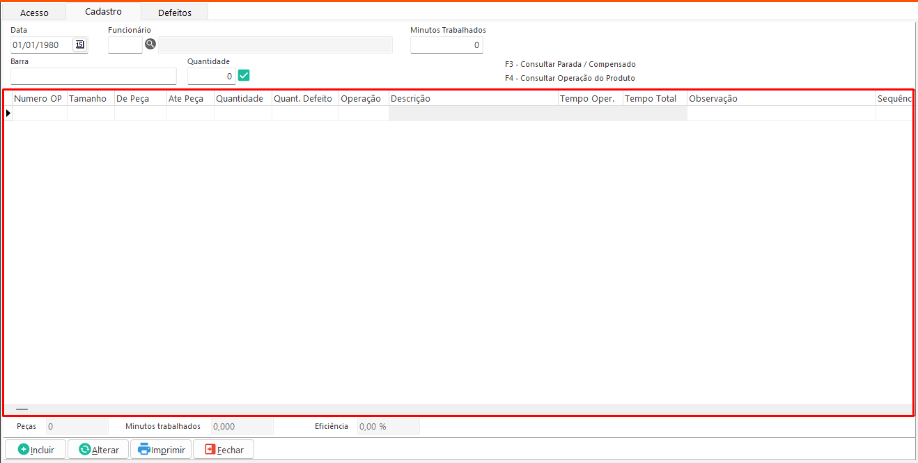 - Defeitos: Permite informar a quantidade de defeitos associados a cada peça da ordem de produção.