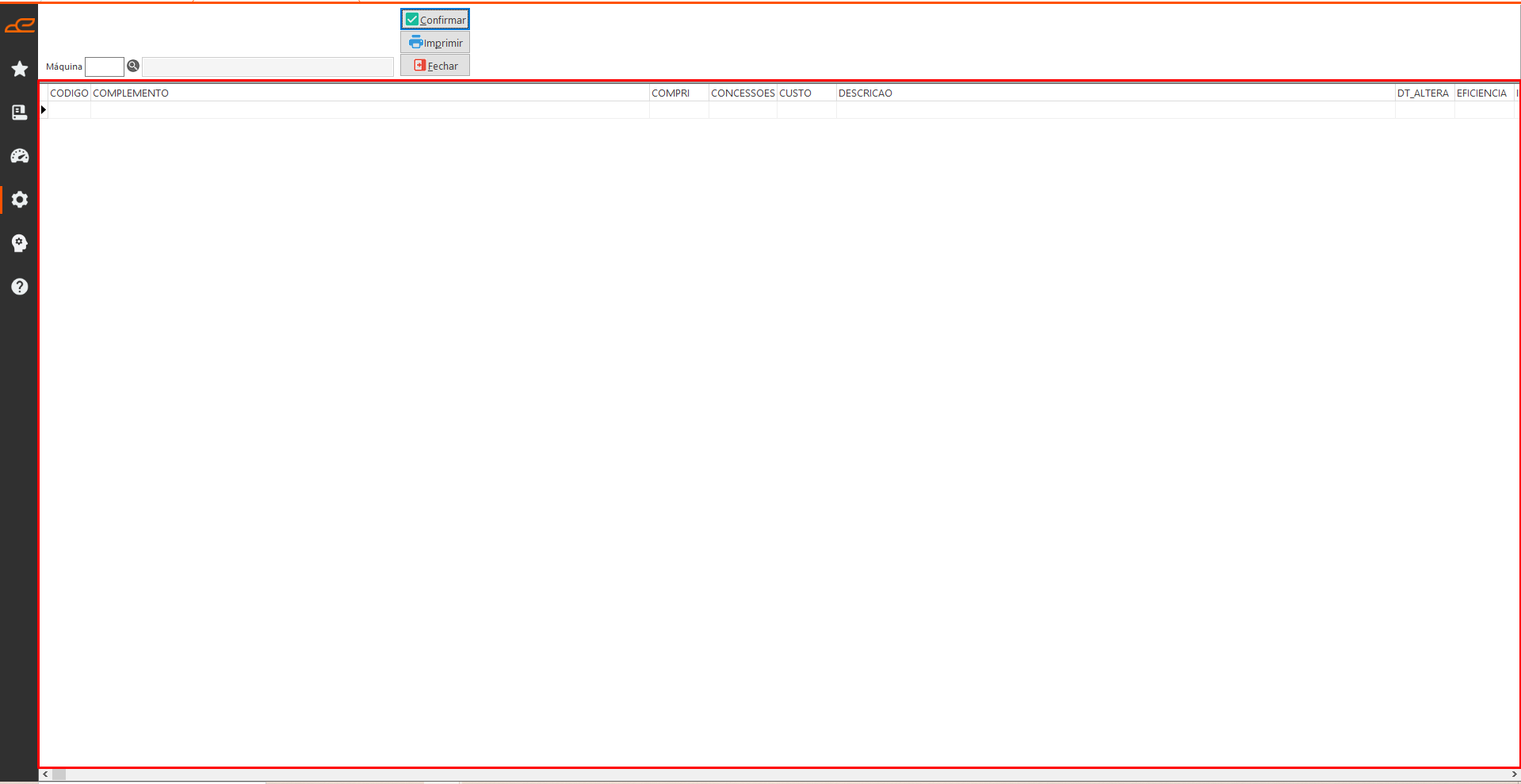 • Máquina: Permite selecionar a máquina associada à operação, facilitando a consulta das informações relacionadas.