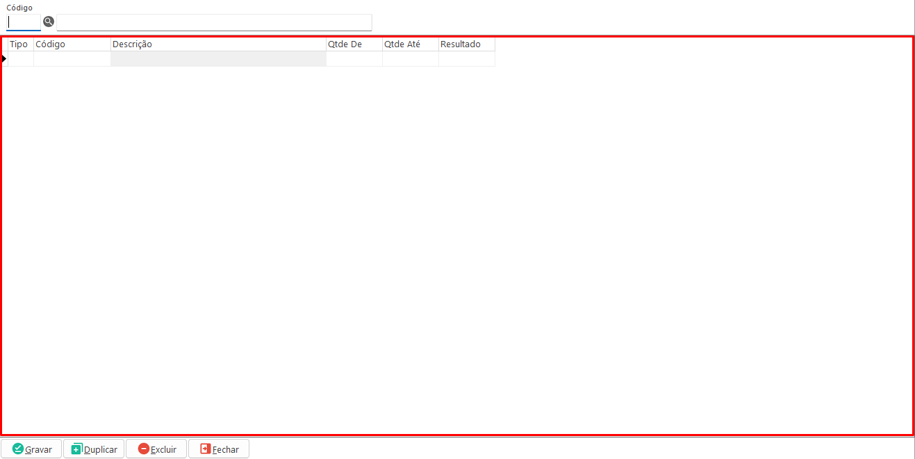 - Gravar: Salva as informações definidas nos filtros e na tabela.