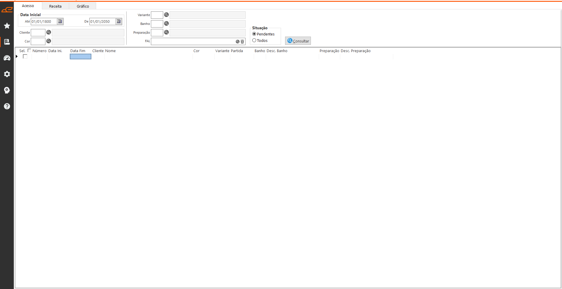 • Banho: Filtro referente ao código do banho informado na receita.