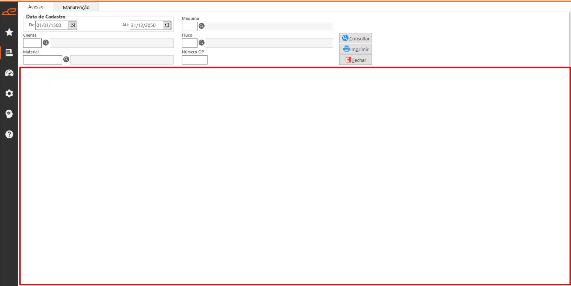 - Consultar: Permite fazer a consulta de uma ordem de produção.