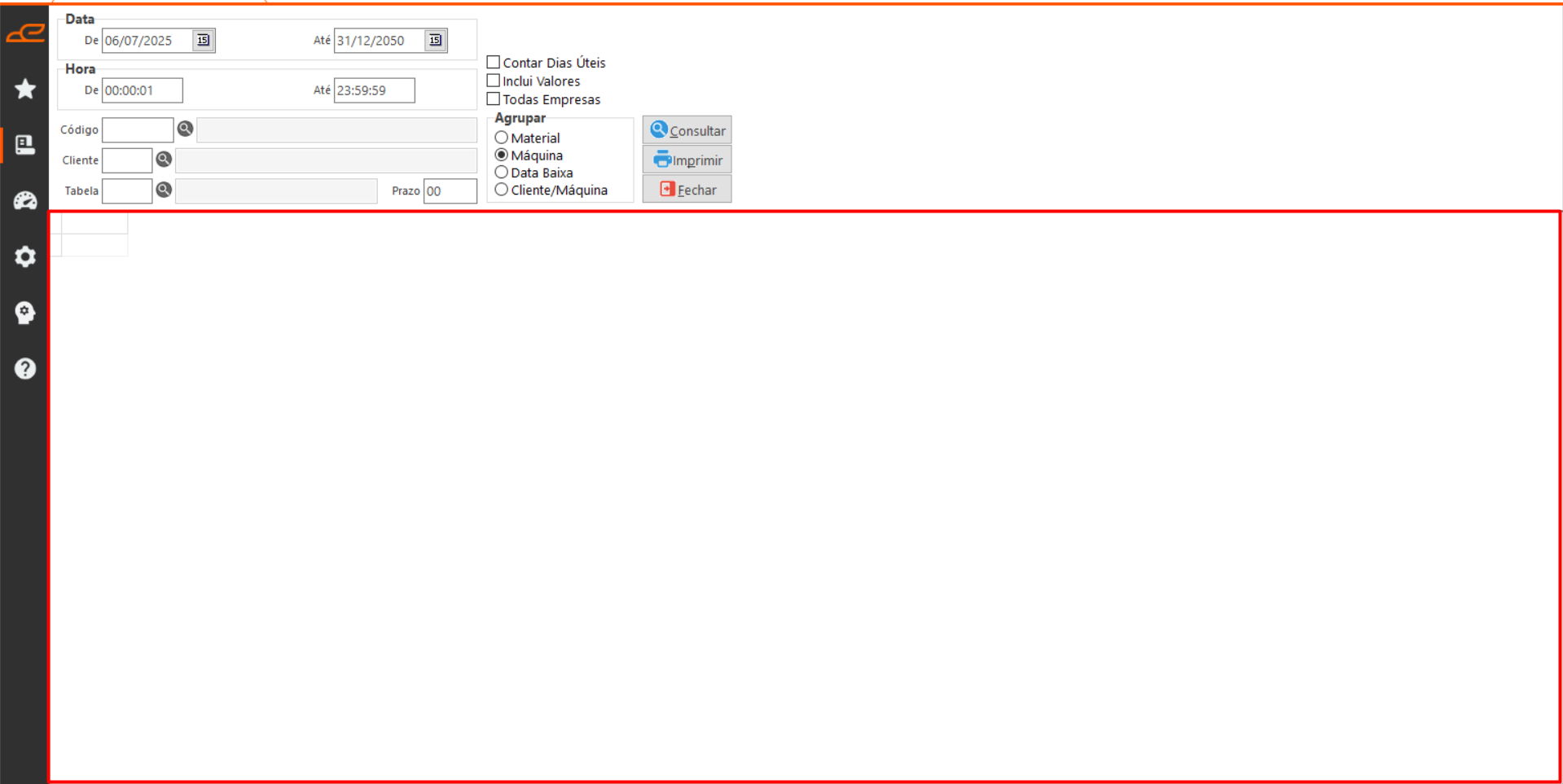 - Consultar: Executa a consulta com base nos filtros e opções selecionados na tela.