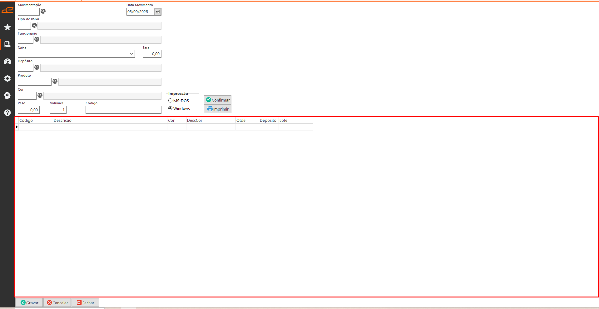 - Imprimir: Gera a impressão do layout ‘WEtqLoteRolo.prt’.