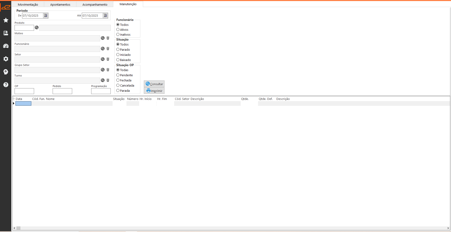 • Funcionário: Filtro referente ao funcionário que efetuou o apontamento de OP.