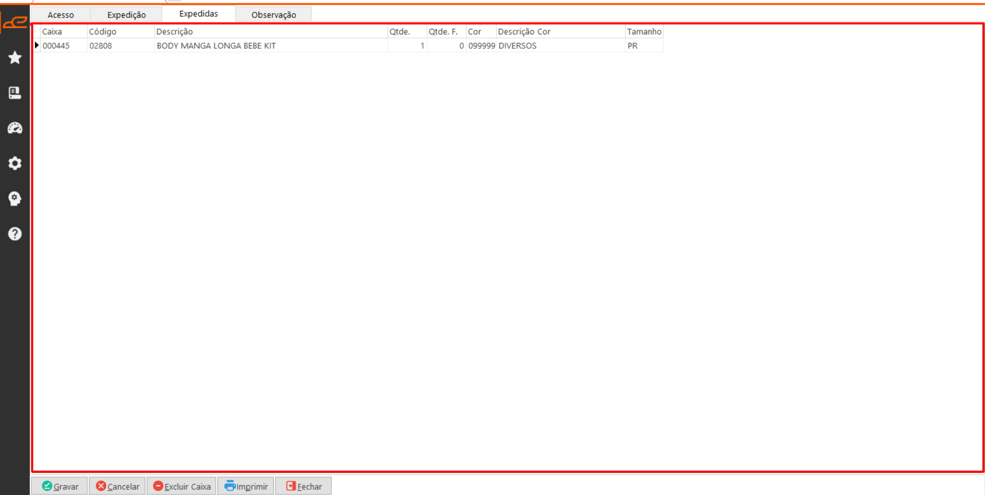 • N° Caixa: Indica um número correspondente à caixa que na expedição.