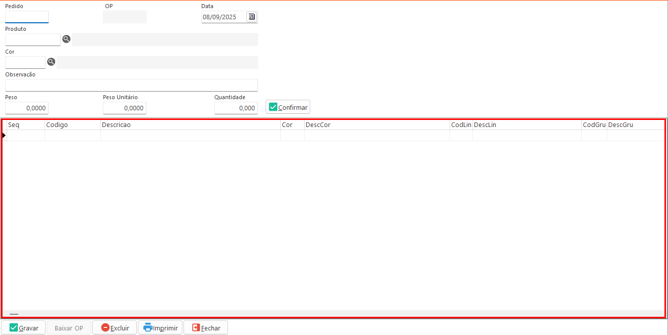 • Baixar OP: Realiza a baixa dos consumos da ordem de produção associada ao pedido.