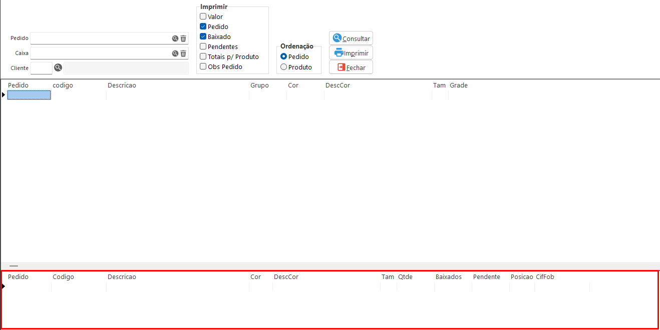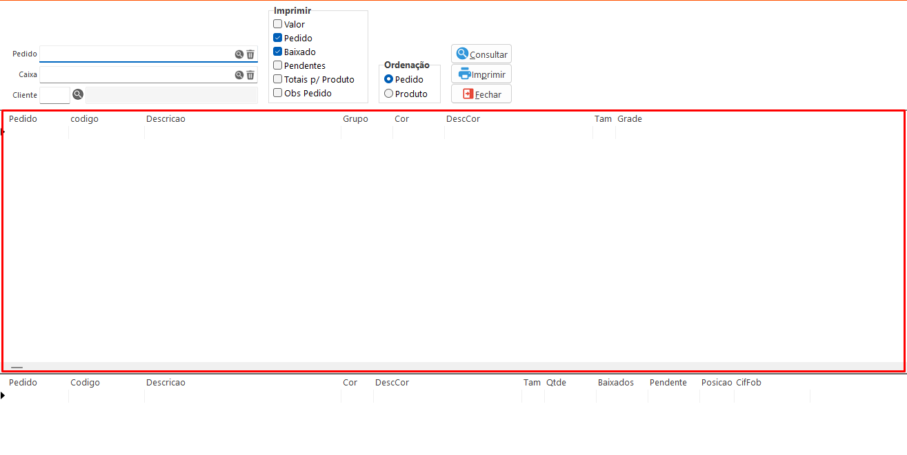 - Imprimir: Imprime o layout WRelExpPedCaixa.prt.