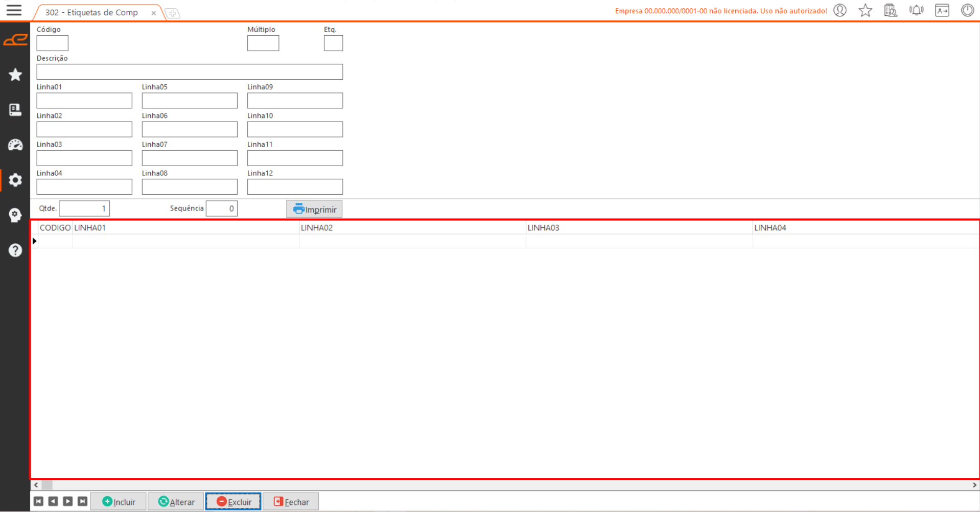• Linha01 até Linha12: Permite definir um código que será impresso na etiqueta.