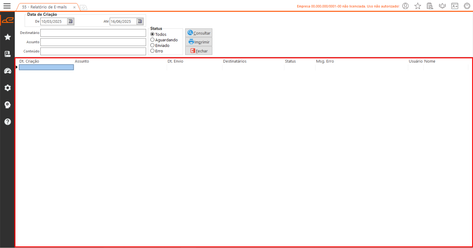 - Data de Criação: Filtro referente à data de criação do log associado ao envio de e-mails.