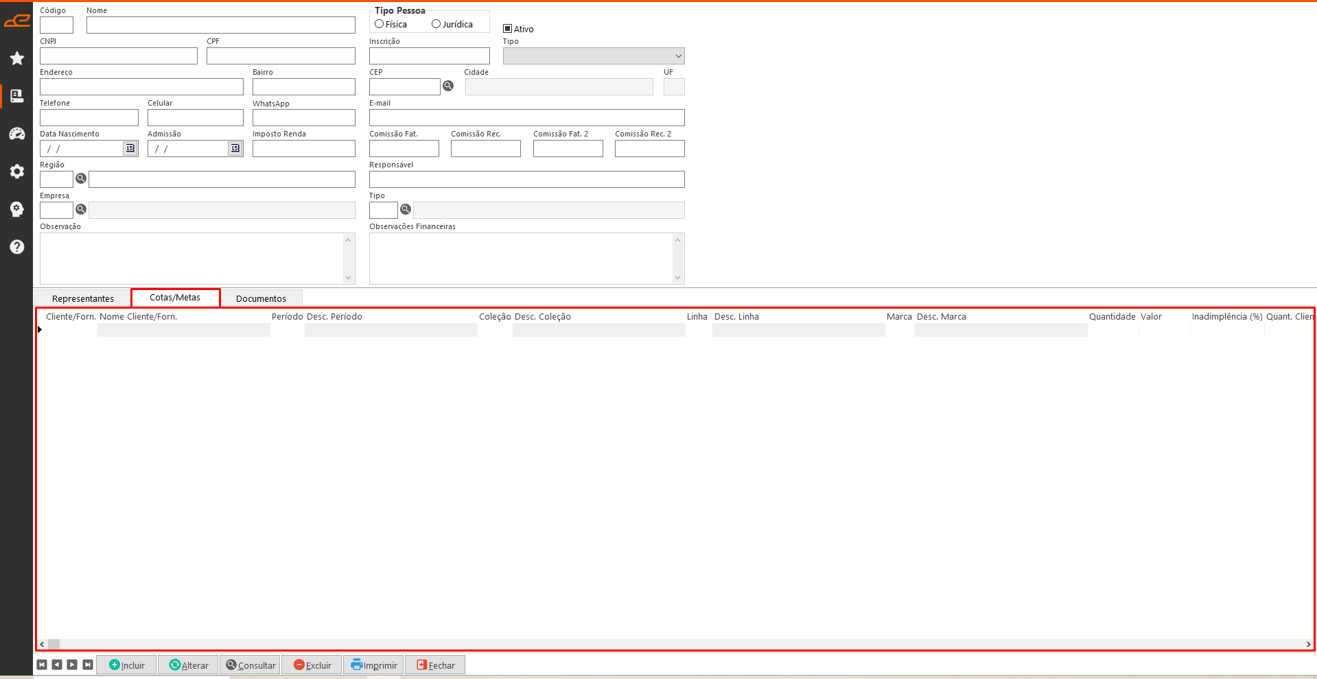• Cotas/Metas: Referentes as cotas e metas do representante consultado.