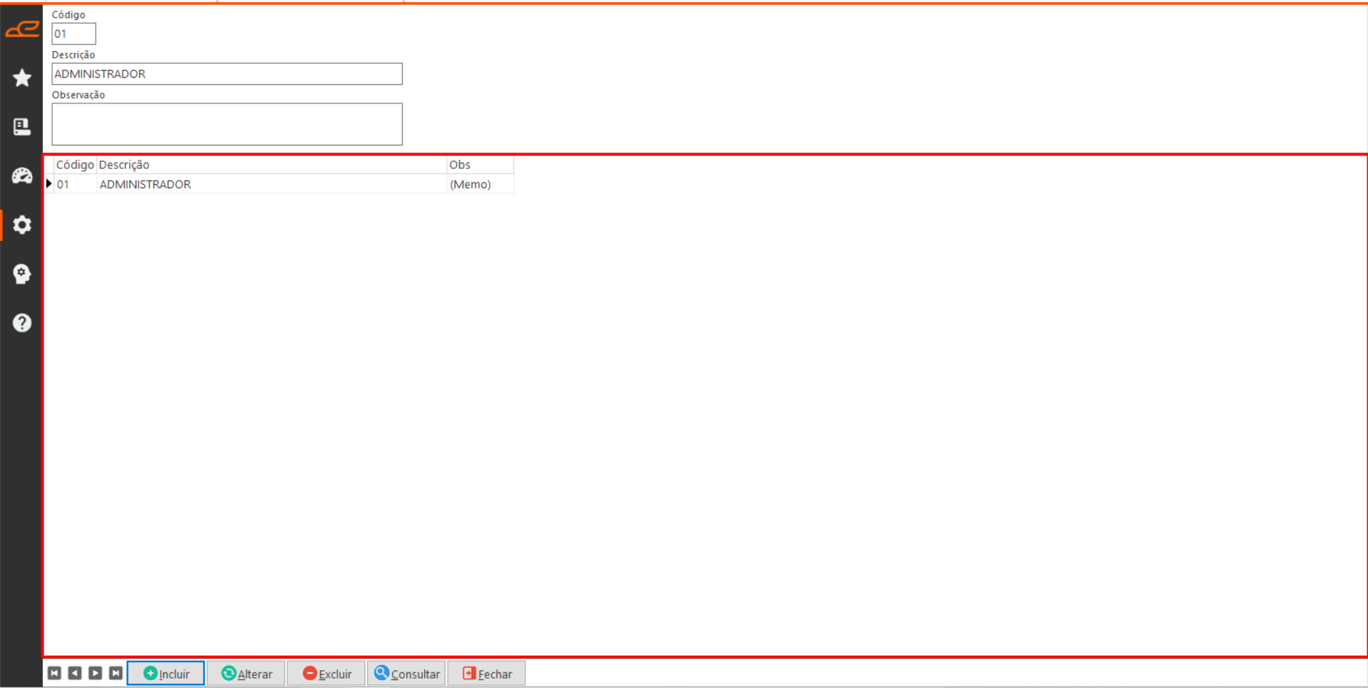 - Confirmar: Este botão é habilitado após clicar em “Incluir” ou “Alterar”, e permite salvar as alterações realizadas.