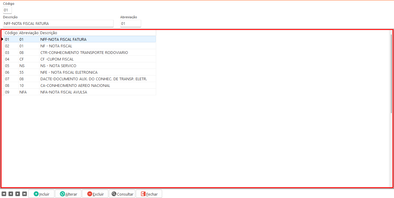 • Consultar: Abre a pesquisa para consultar um Tipo Fiscal existente.