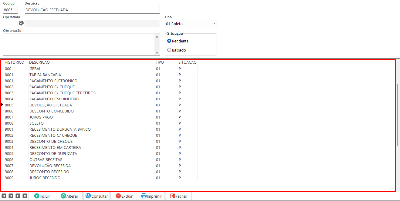 • Tipo: Informa o tipo do Histórico.