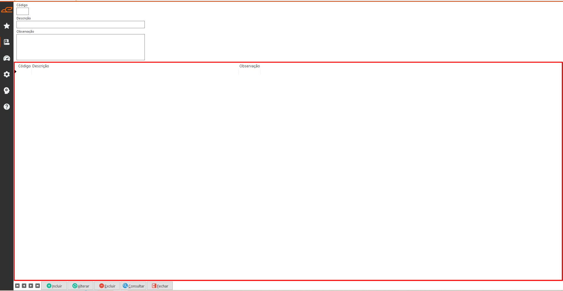 - Confirmar: Este botão é habilitado após clicar em “Incluir” ou “Alterar”, e permite salvar as alterações realizadas.