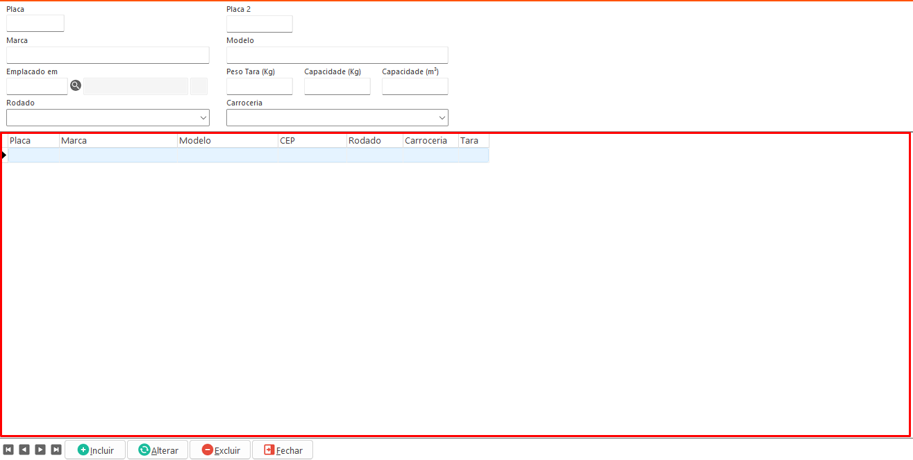 - Alterar: Habilita os filtros do registro selecionado na tabela, permitindo alterar as informações do Veículo.