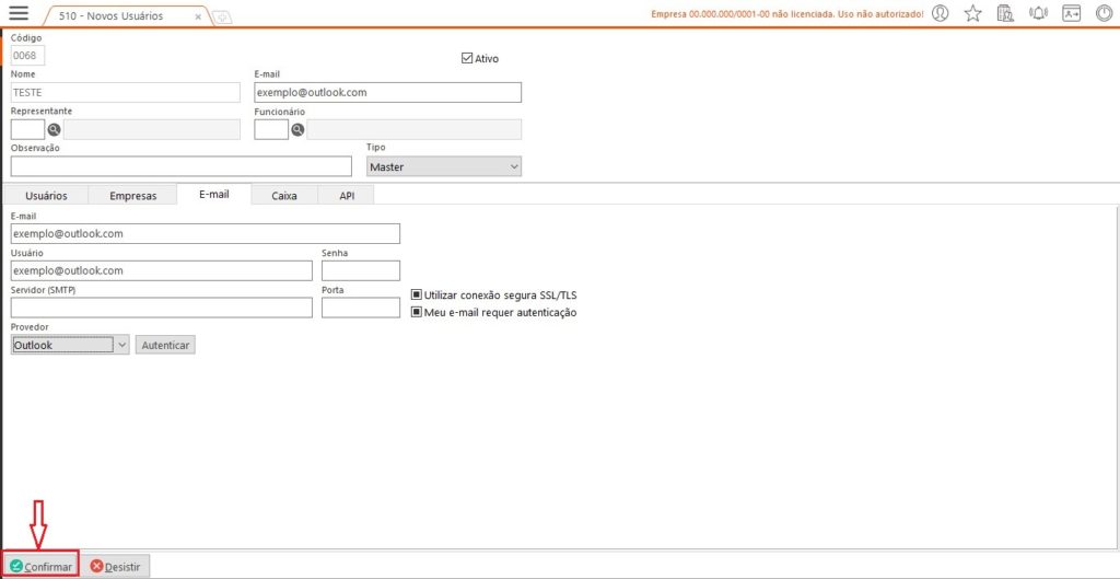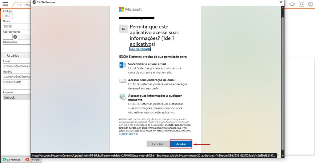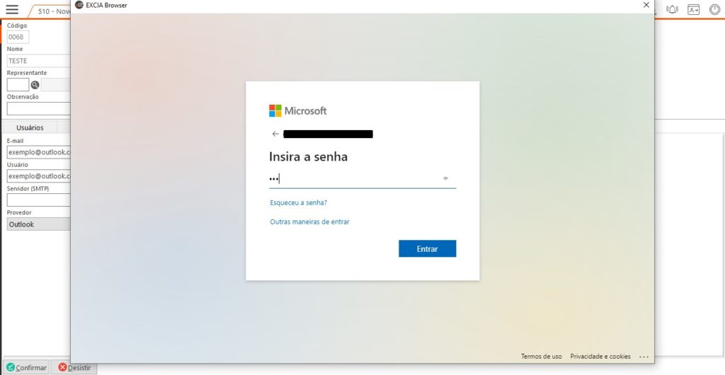 Passo 5 – Após concluir, a tela do Excia Browser será fechada e é necessário confirmar o cadastro do usuário para aplicar devidamente a autenticação dentro do ERP: