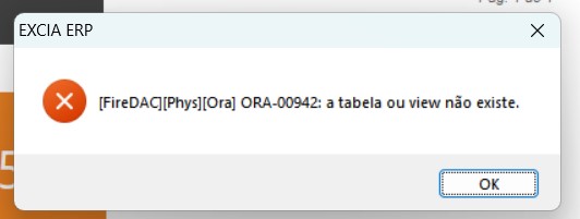 Ao acessar alguma tela do ERP Excia e apresentar a mensagem de erro abaixo sendo um banco Oracle: