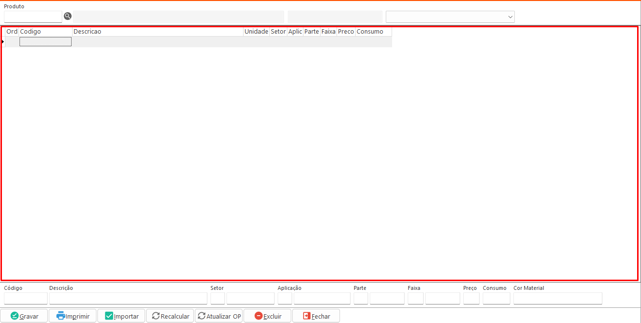 - Importar: permite importar os consumos de outro produto.