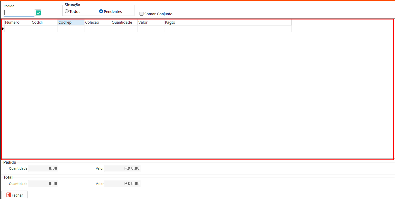 • Total Quantidade: Exibe a quantidade total de todos os pedidos consultados.