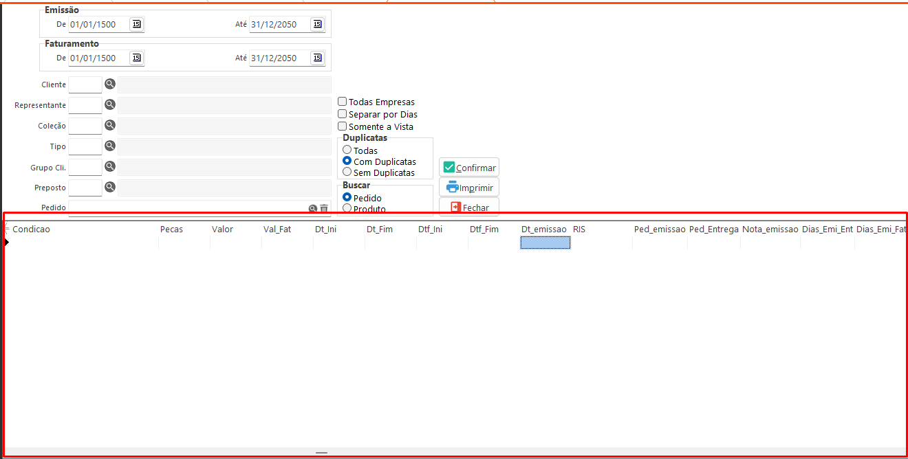 • Somente a Vista: Consulta somente por pedido com a condição de pagamento igual a ‘0’.