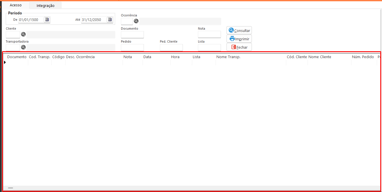 - Ocorrência: Define na consulta a ocorrência da integração.