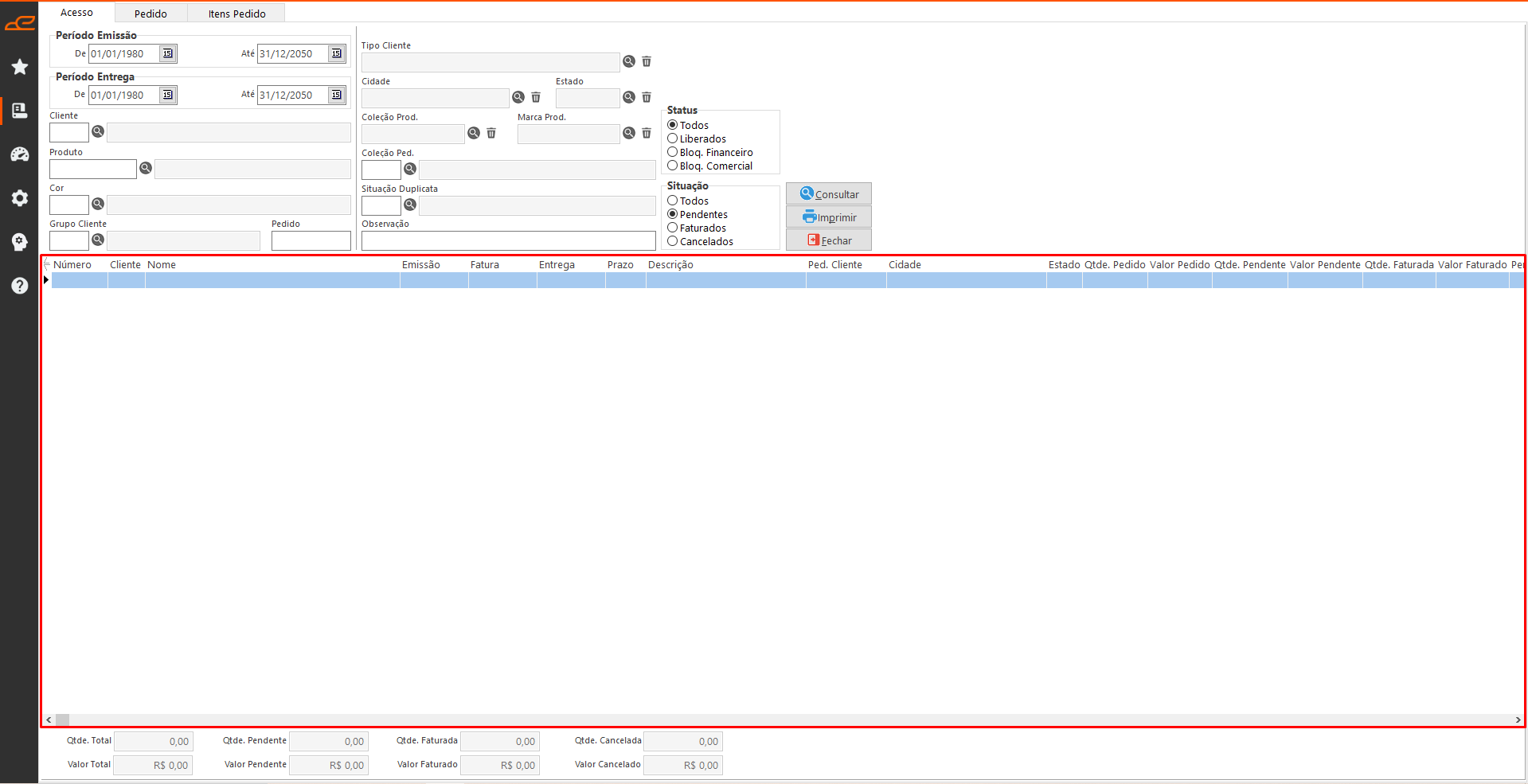 - Qtde Total: Exibe a quantidade total referente aos pedidos consultados.