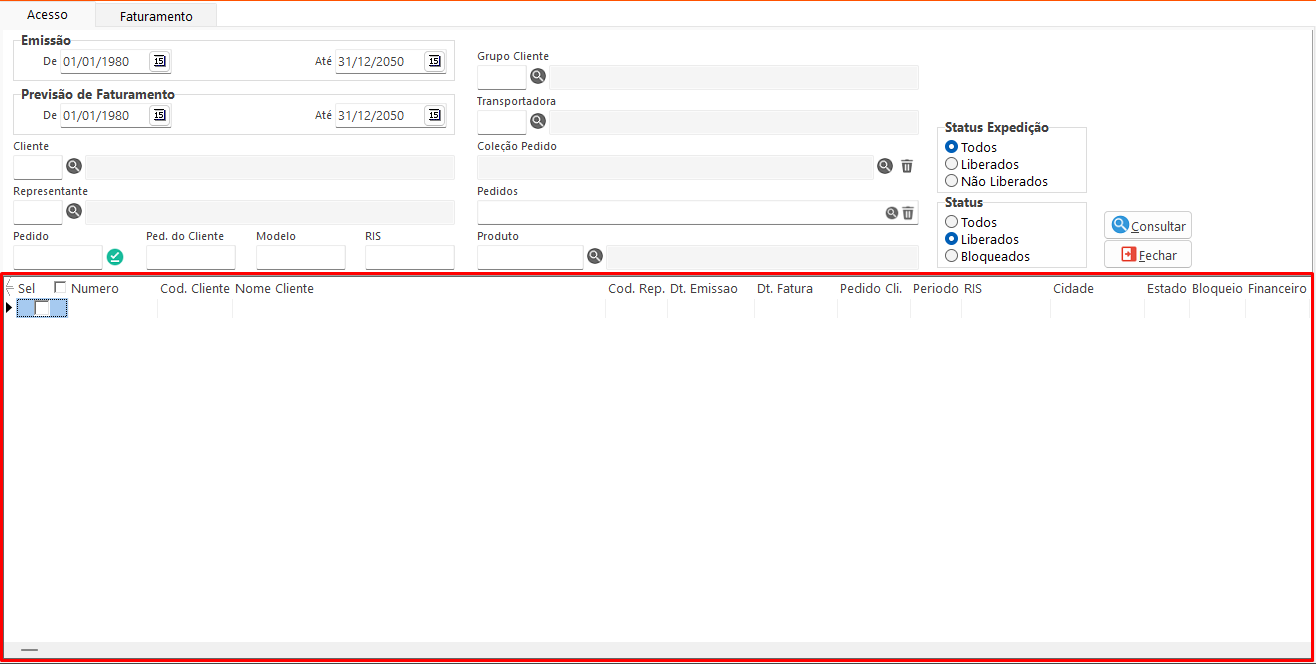 - Status Expedição: Define na consulta se os pedidos estão liberados ou não para a expedição.