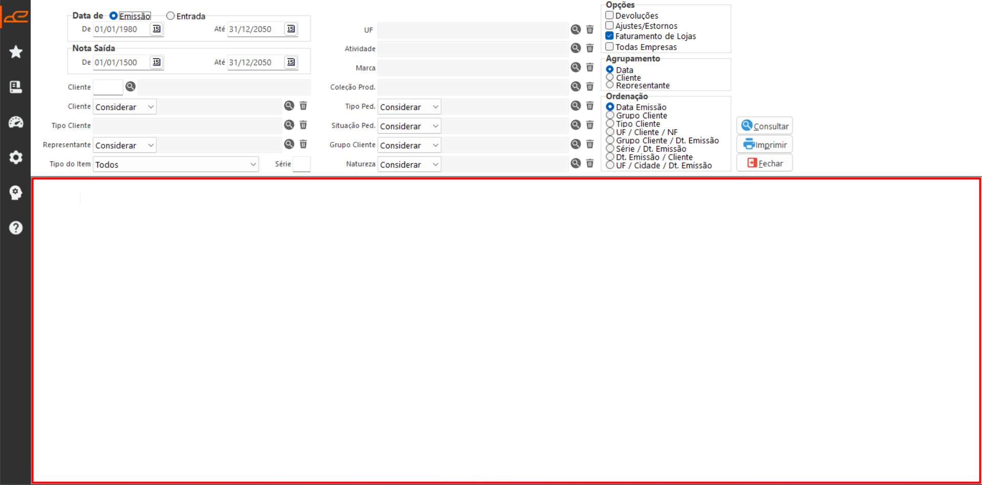 - Faturamento de Lojas: Ao marcar essa opção vai trazer as notas fiscais que o tipo de faturamento é Loja.