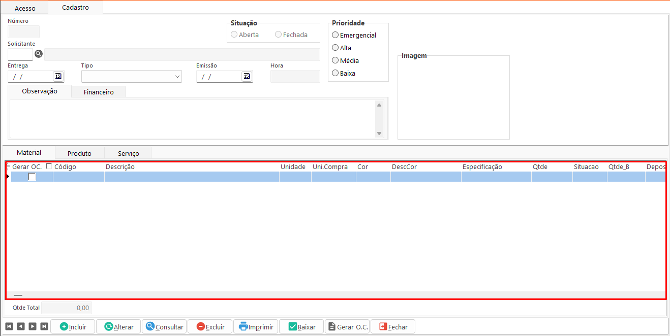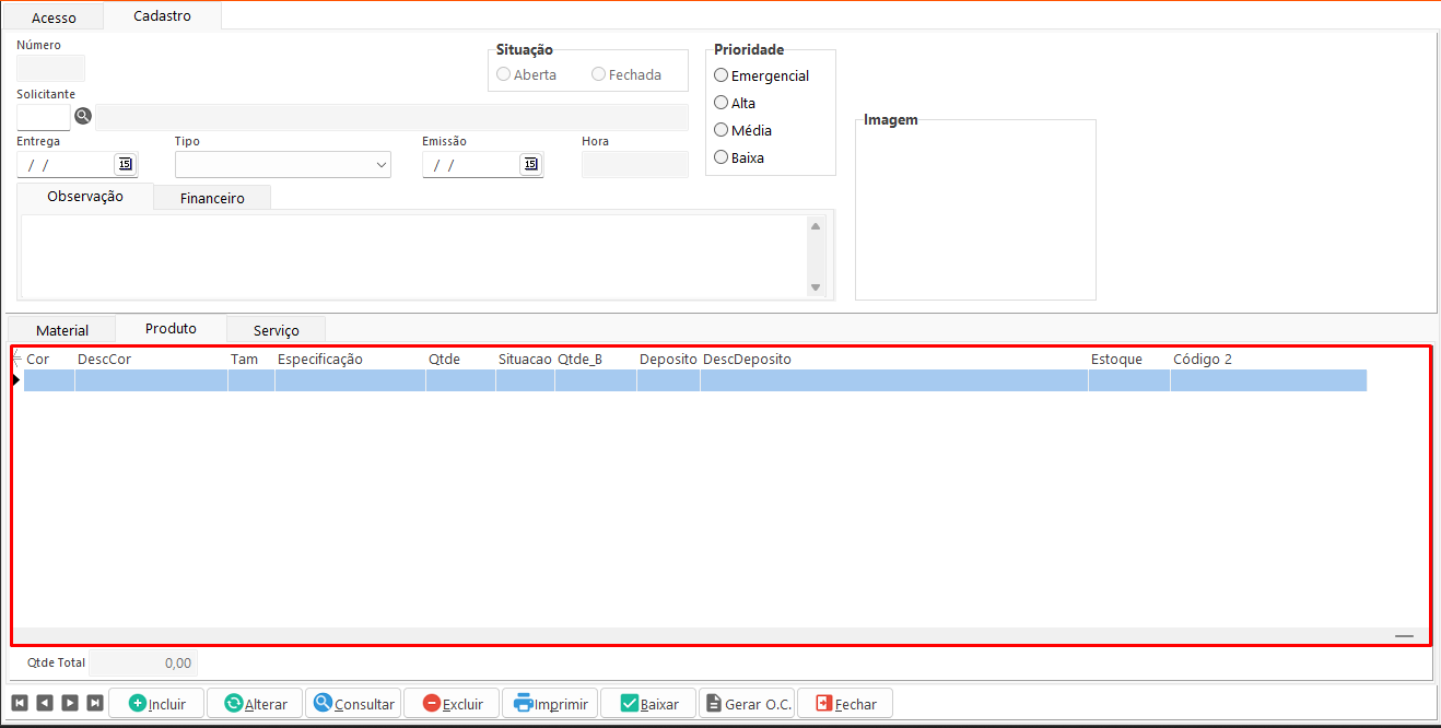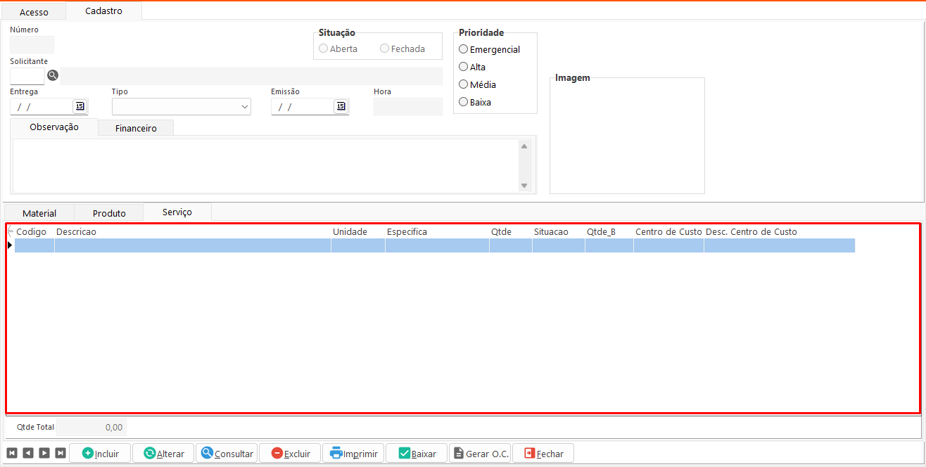 - Prioridade: Define o nível de prioridade da solicitação, podendo ser Alta, Média ou Baixa.