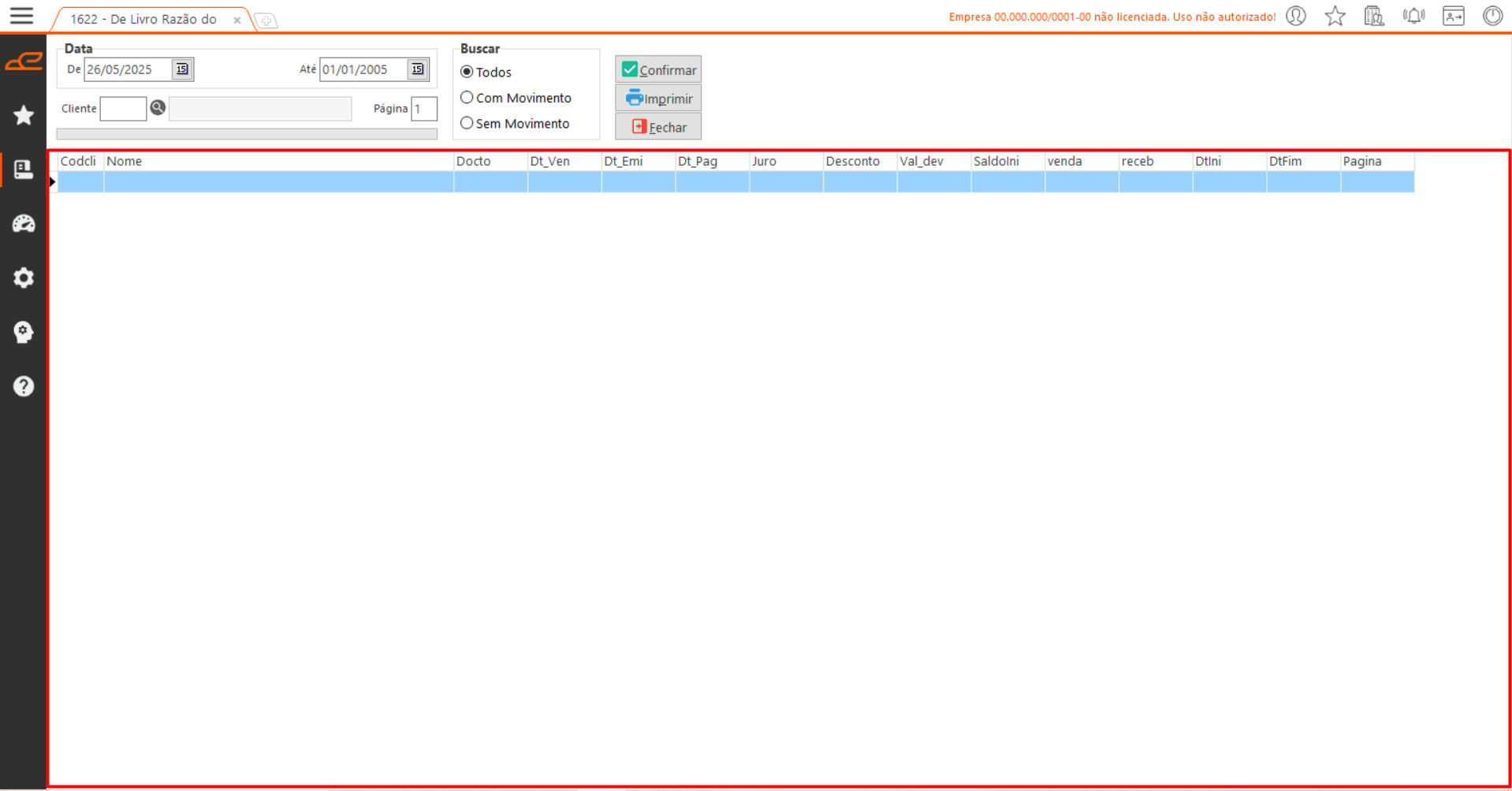 • Confirmar: Executa a consulta com base nos filtros e opções selecionados.